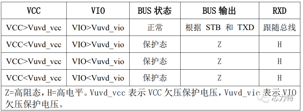 只要VCC和VIO其中有一个电压输出低于其欠压保护电压,芯片CANH、CANL就输出高阻状态,此时不影响总线。