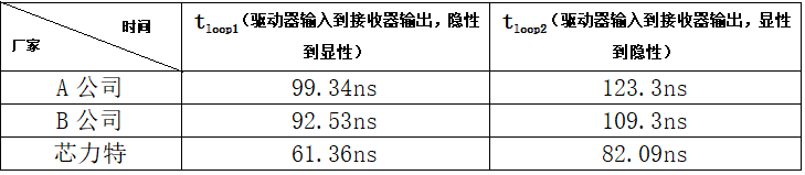 对比现在市面上几家进口公司的同类芯片的环路延时数据,如下表所示:(以下数据在相同环境下测试)