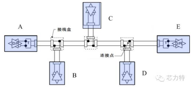 图2 带分支的主干总线形拓扑